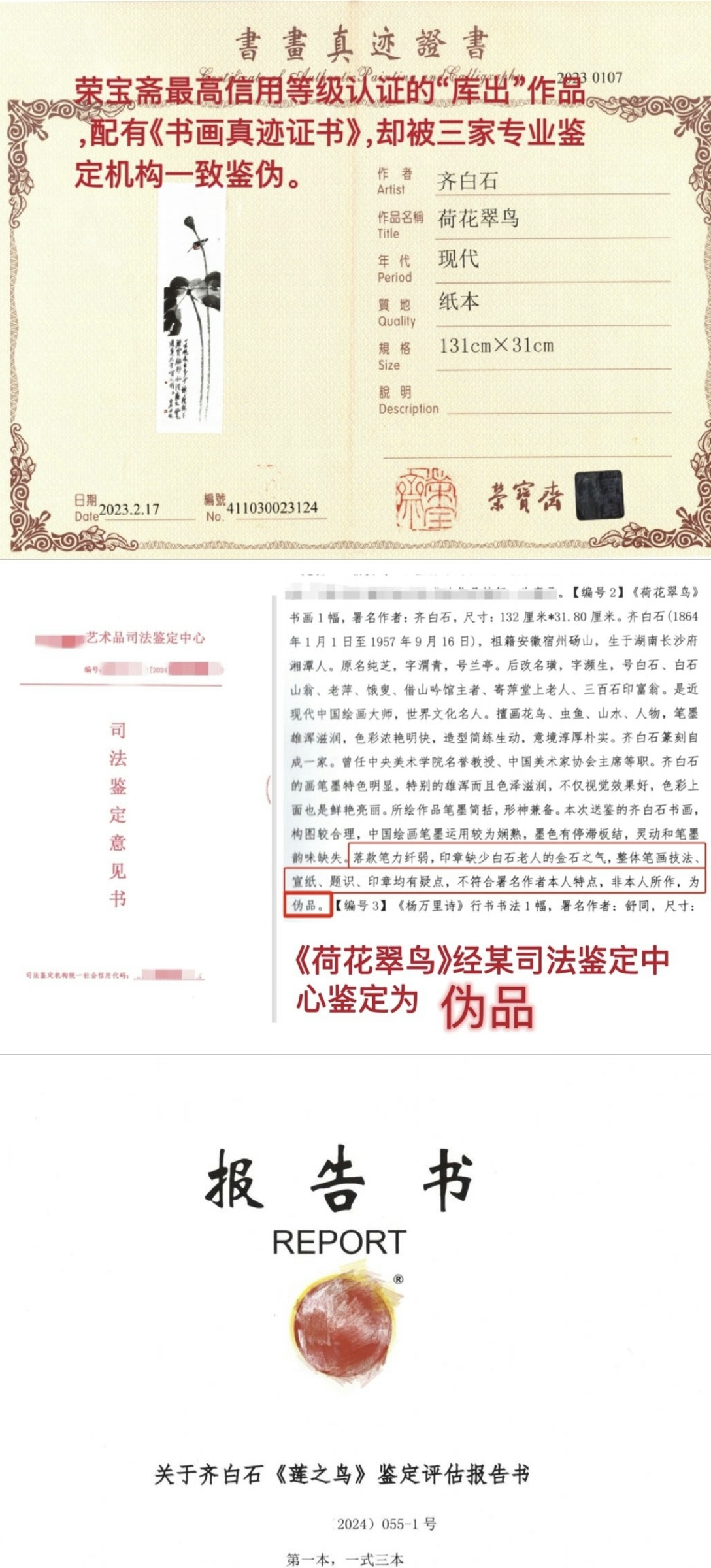 齐白石《荷花翠鸟》3次鉴定均为赝品